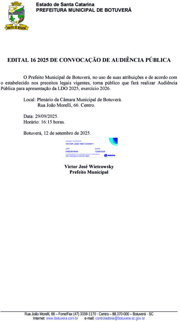 Edital 16/2025 – Convocação de Audiência Pública